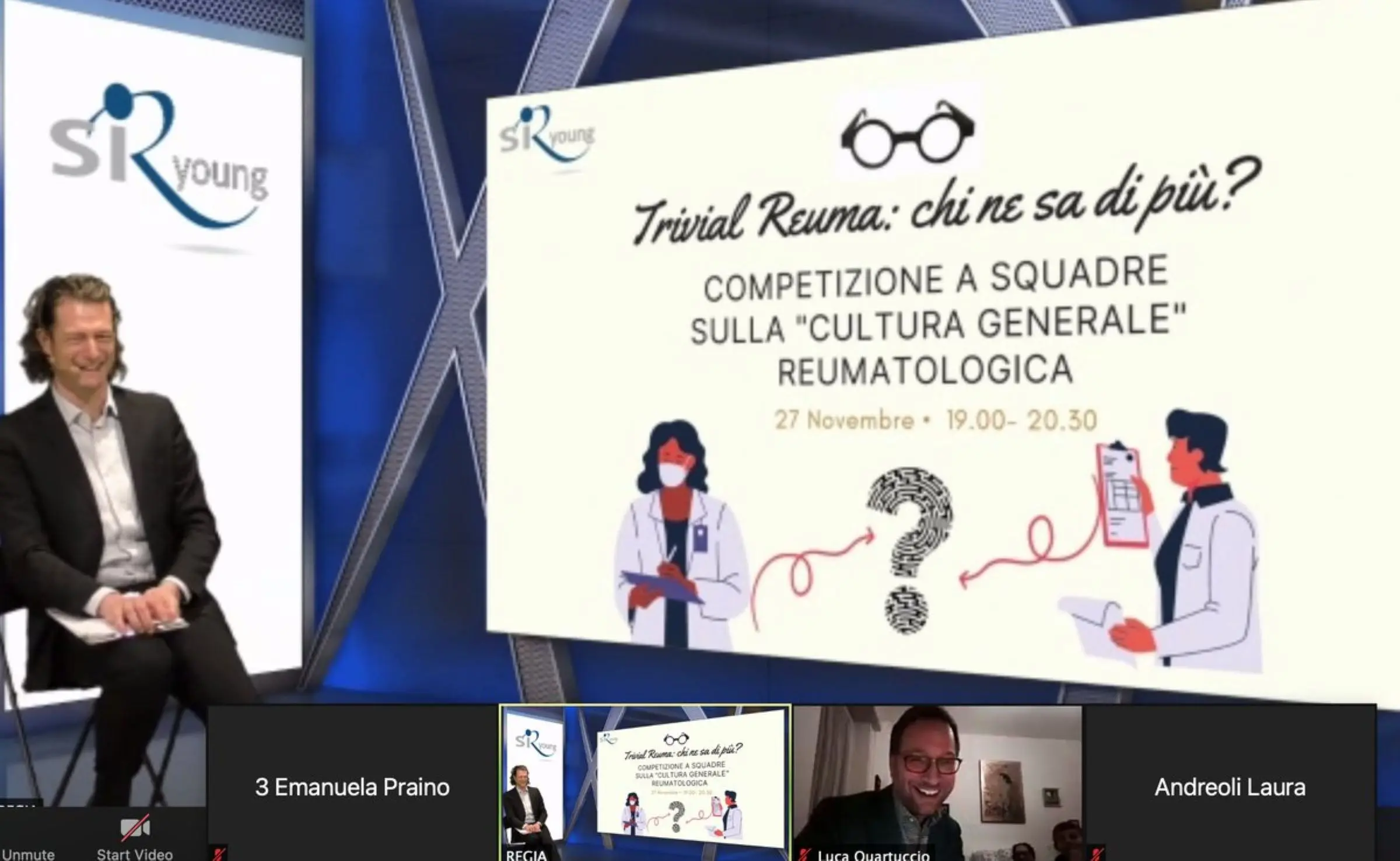 Una serata virtuale a causa della pandemia, che tuttavia è stata in grado di riunire i giovani reumatologi in un divertente e stimolante gioco a squadre, “Trivial Reuma”.